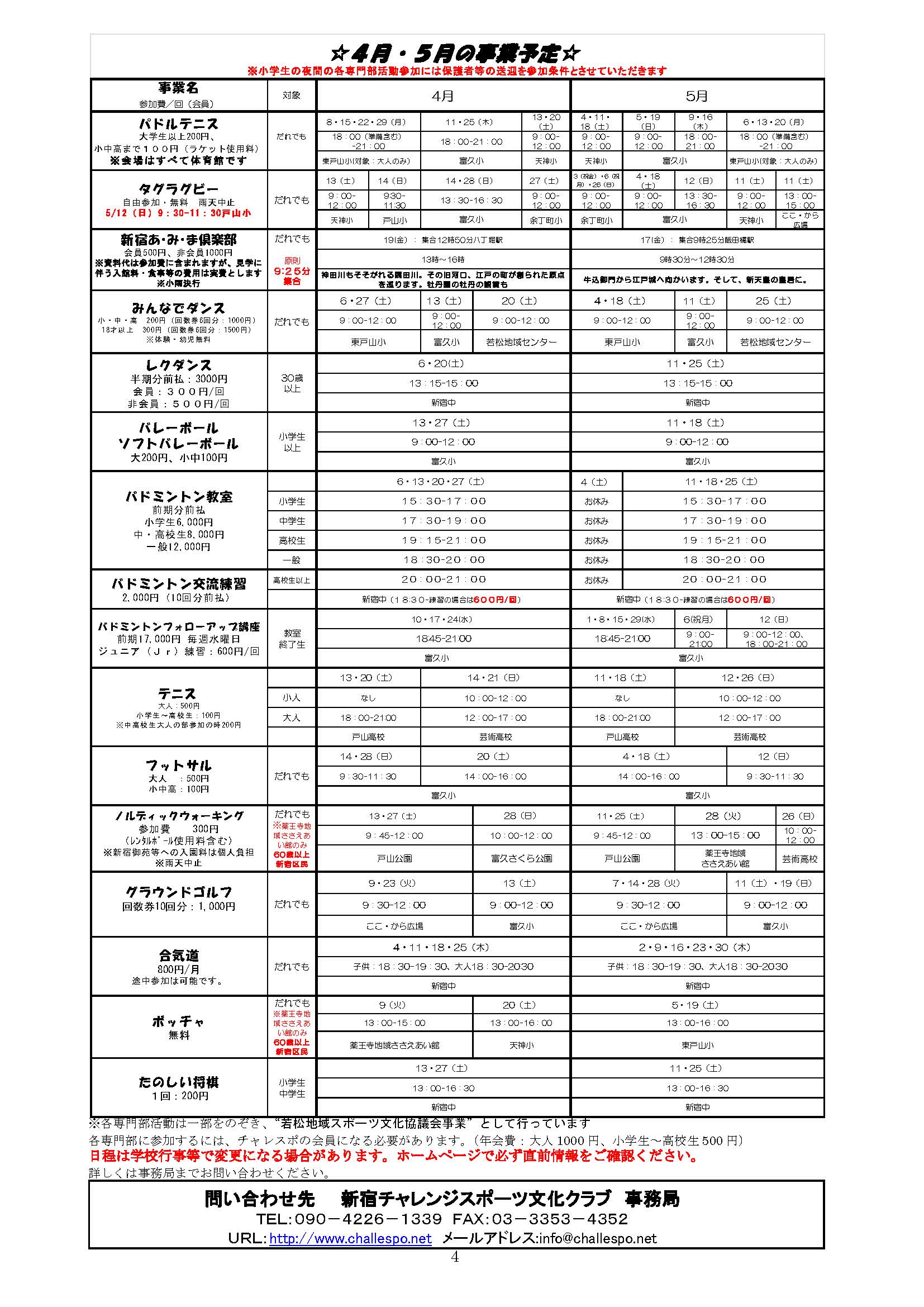 末尾4面に4月・5月の開催予定がありますので初めて参加希望の方もお気軽にお越しください。
