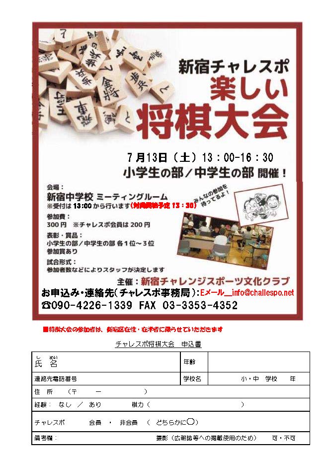 お申込み・連絡先(チャレスポ事務局):☎090-4226-1339 FAX 03-3353-4352