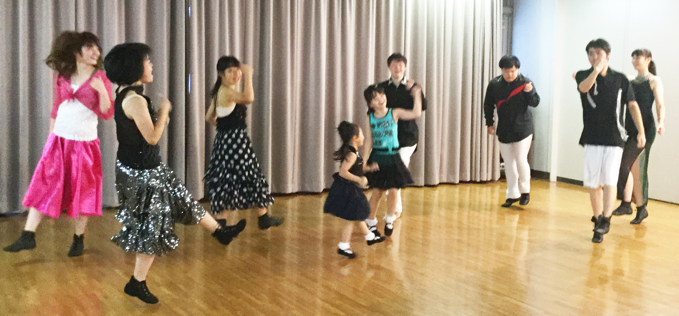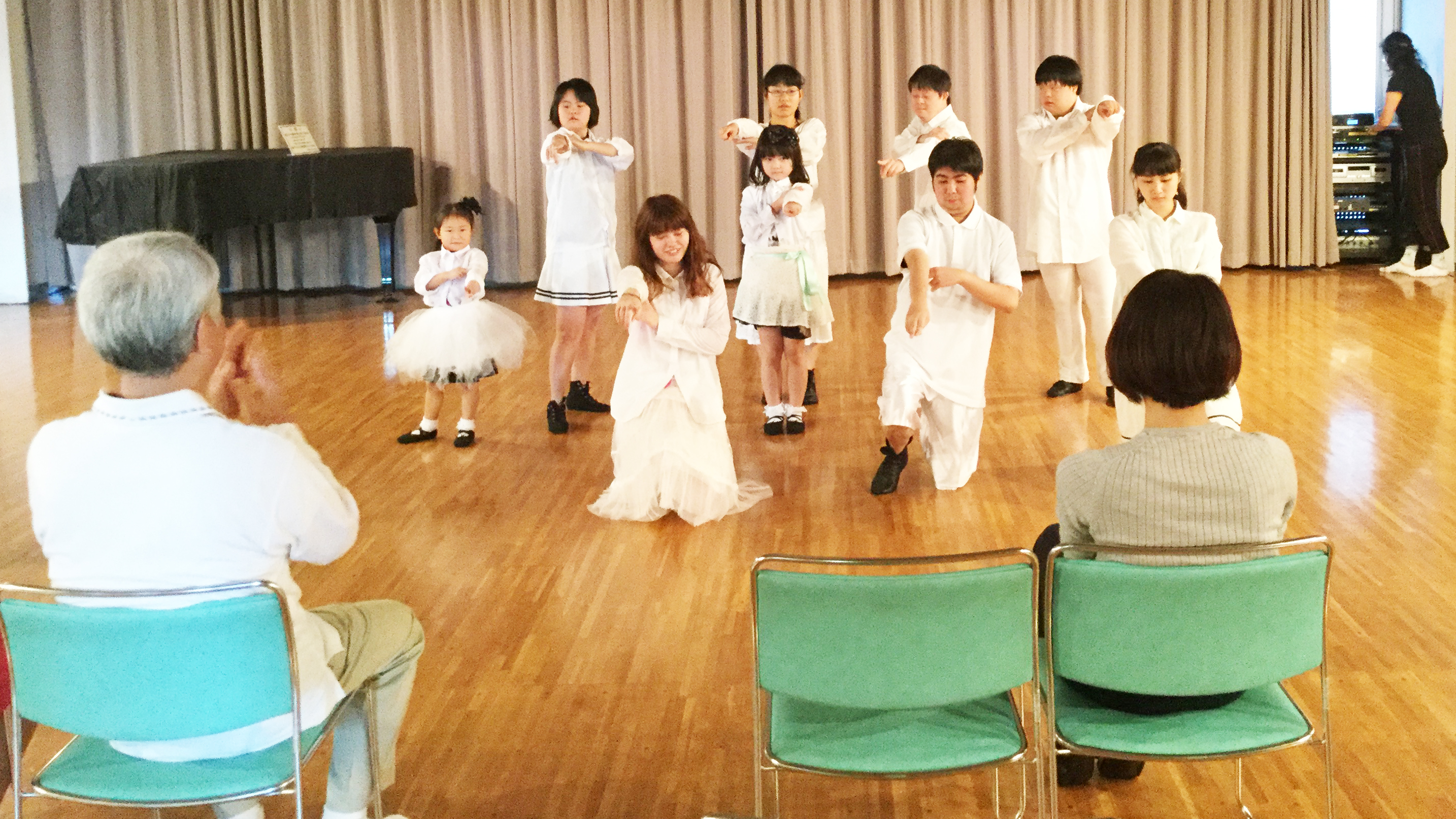写真一番最後は、フリーのダンスタイム、小さい子が二人鬼ごっこを始めて、それをお姉さんが混ざりつつも他のみんなと踊っている状況。明るくて、可愛くて、楽しそうで、仲がよさそうでいつみてもみんなでダンスは素敵ですね!