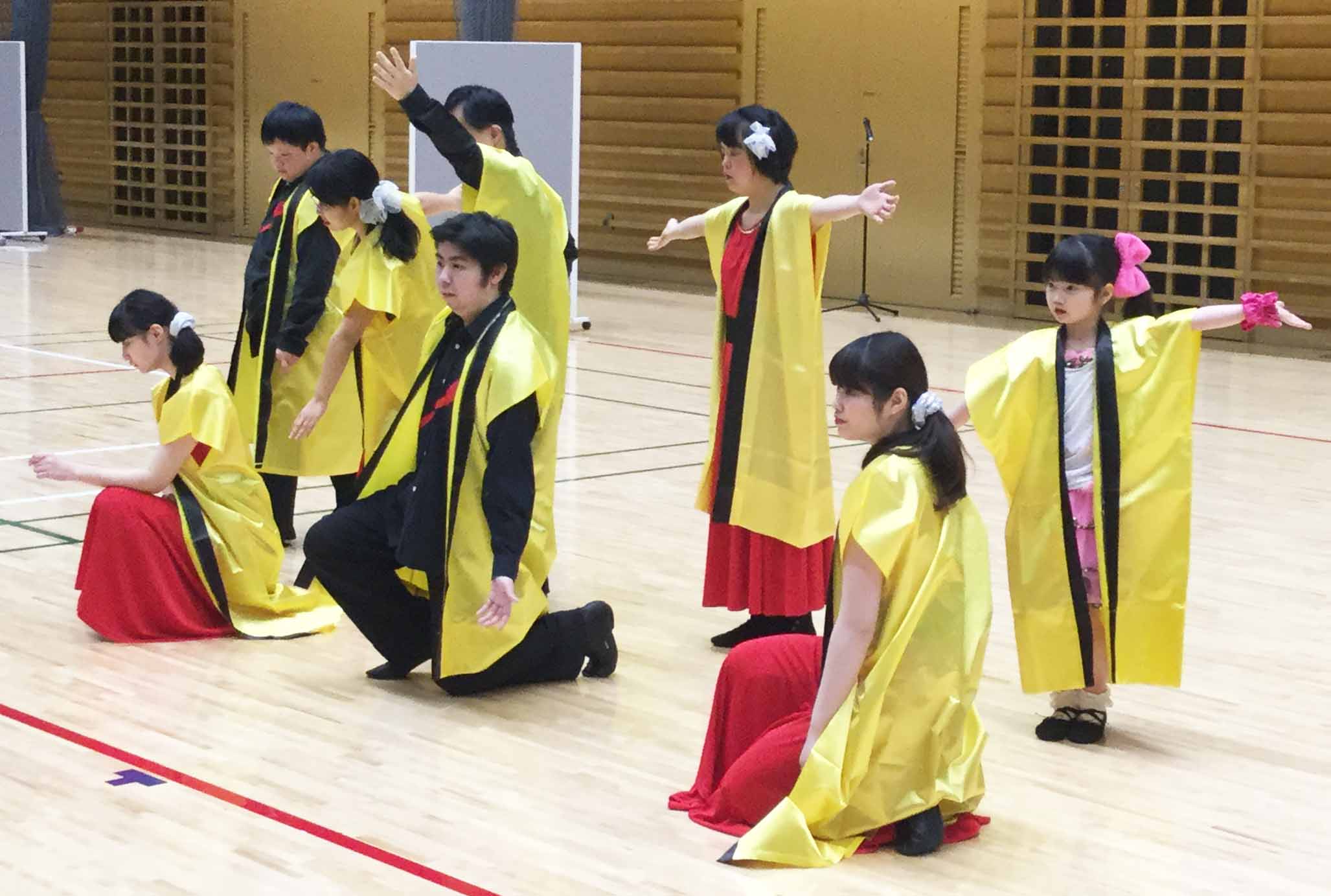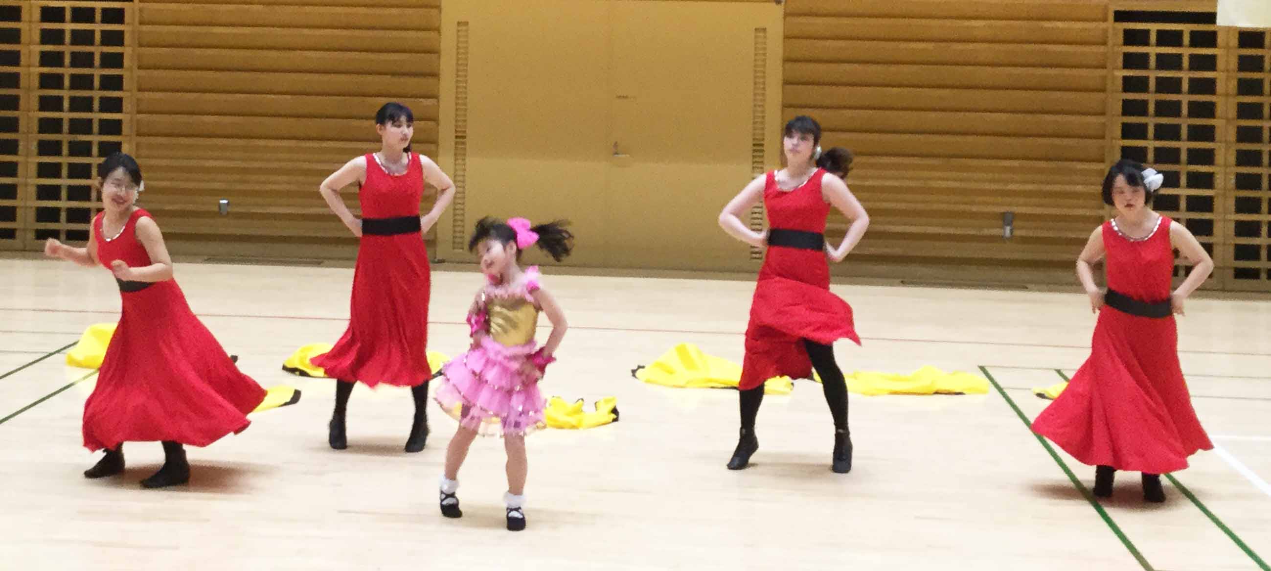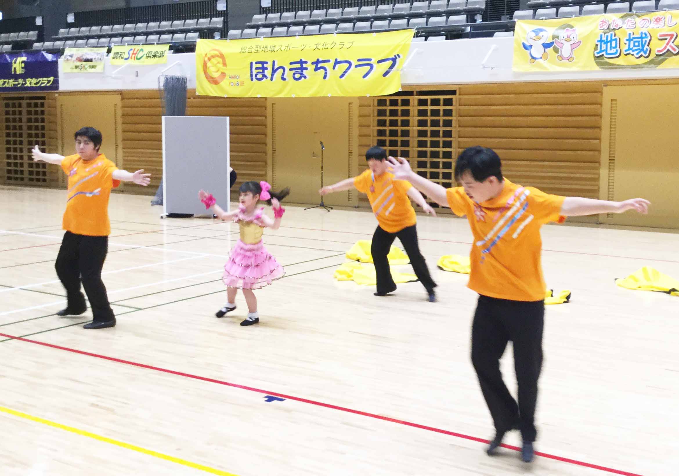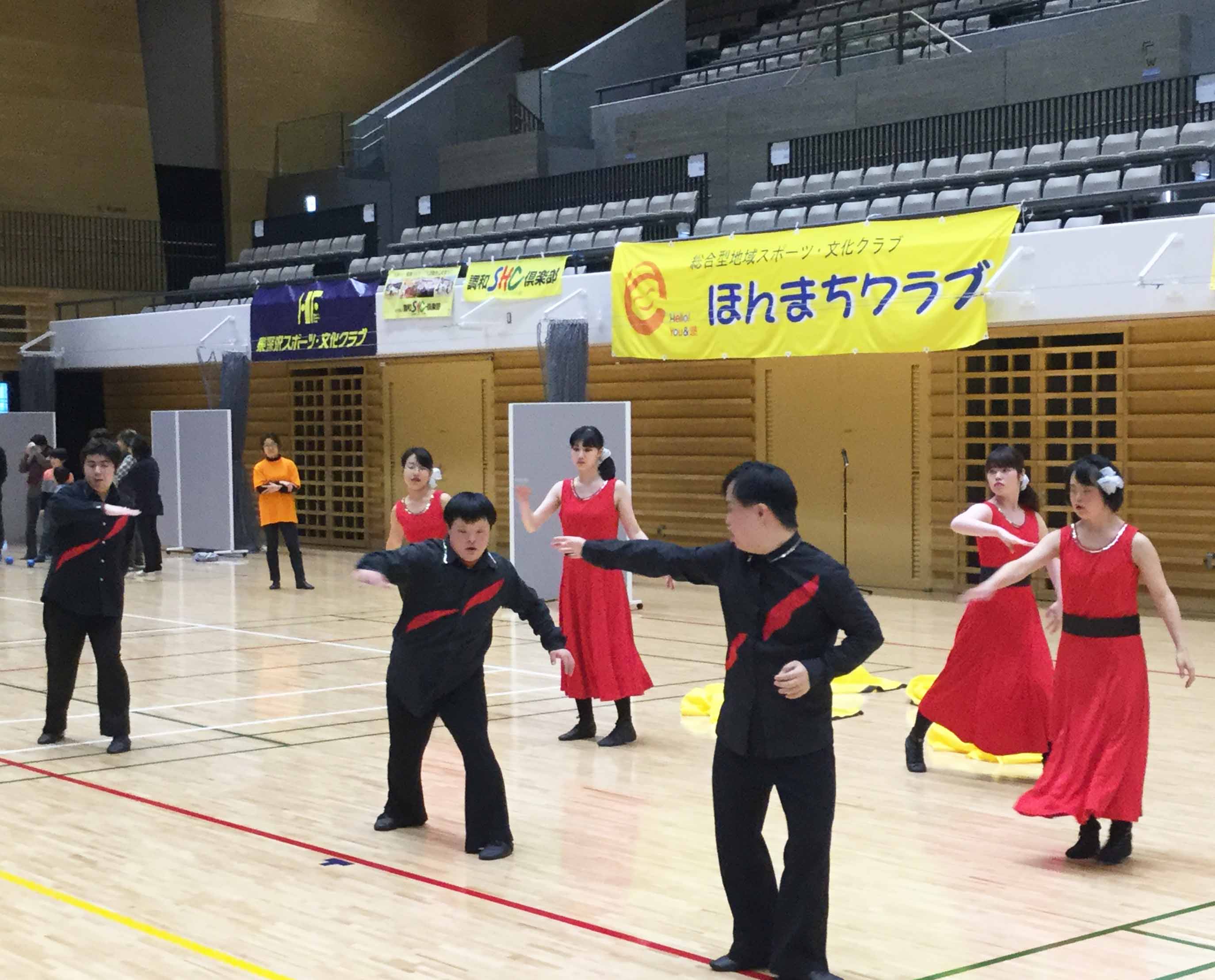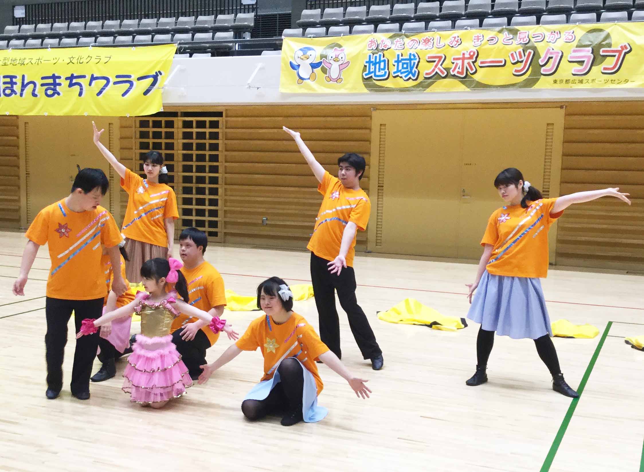 この事業は公益財団法人東京都スポーツ文化事業団が支援しています みんなでダンスチームは、3月10日土曜日12:20-30、駒沢オリンピック総合運動場屋内球技場にて2017年度の地域スポーツクラブ交流会のステージ発表を今年も行いました。曲目はHKT48『しぇからしか』欅坂48『手を繋いで帰ろうか』『プリキュアアラモード』『オー!リバル』、早着替えあり男女入れ替わりありで、見ごたえ十分のステージ発表でした。今回はオリジナルの振り付けを若い子中心でまとめて、ひろこ先生はアドバイスのみ。毎年の成長が本当にうれしい、心温まる発表でした。