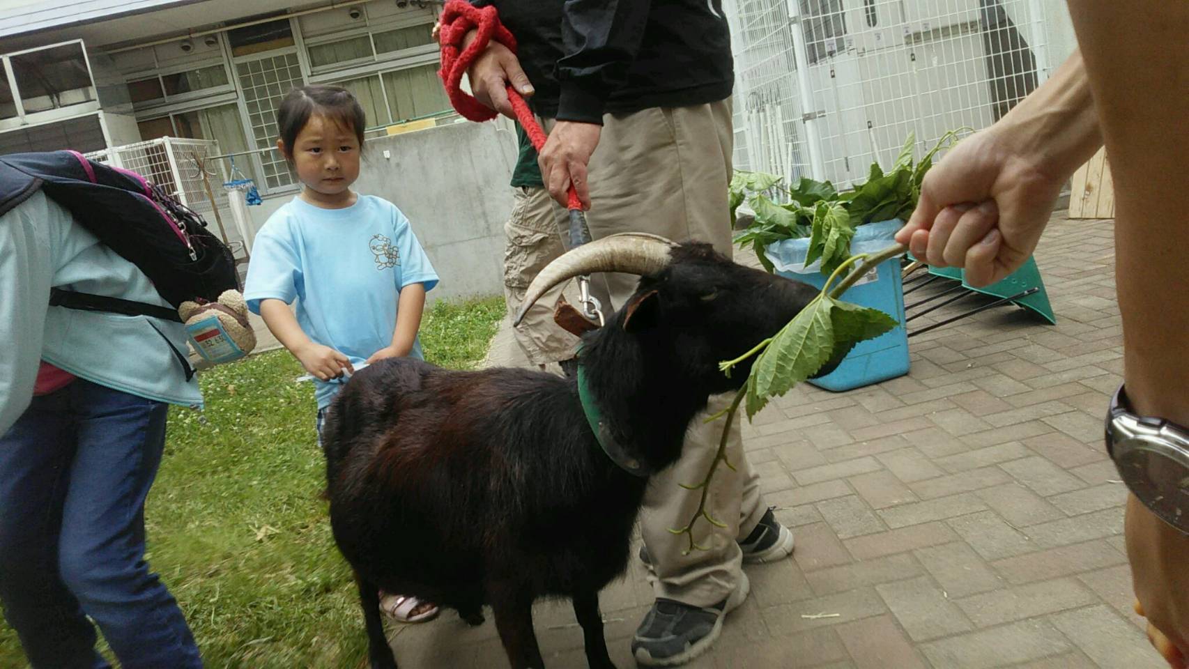 今日、キッズは小学校で飼ってらっしゃるヤギさんの絵を描きに行きました。エサもあげることができてとても楽しい時間となりました!