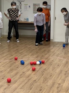 緊急事態宣言期間中お休みしておりましたが、 10月12日(火)再開し、7名の方が参加されました。 久々の薬王寺ささえあい館のボッチャを楽しんでおられました。