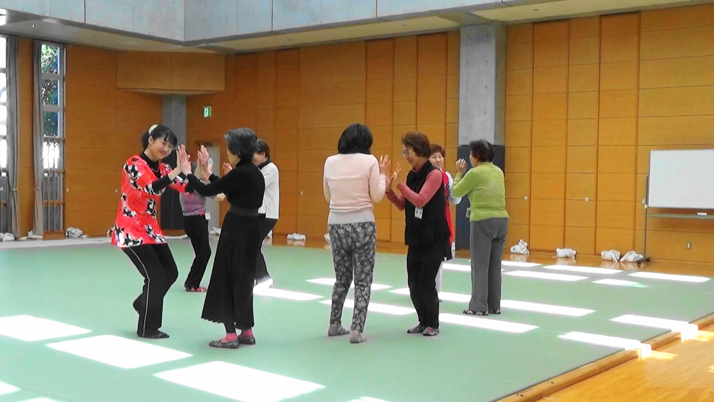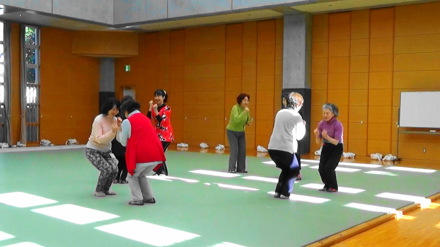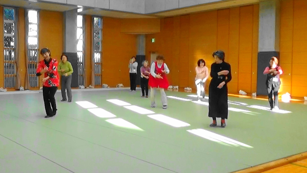 ★1月19日(土)13:15~15:00 新宿中学校武道場 風邪の流行等もあり、少な目7名の参加者とレッスンしました。 寒いのでしっかりとウォーミングアップ『みんなでストレッチ』『新宿いきいき体操』 そして『あったかいんだからぁ♪』/クマムシで更に脚を温めます。