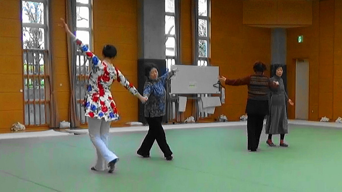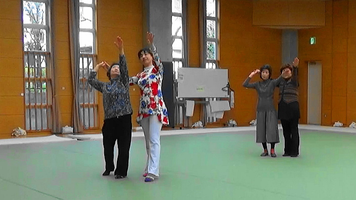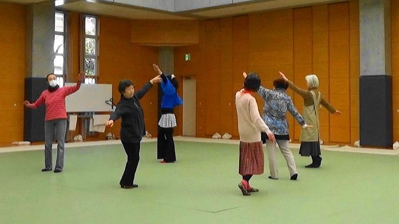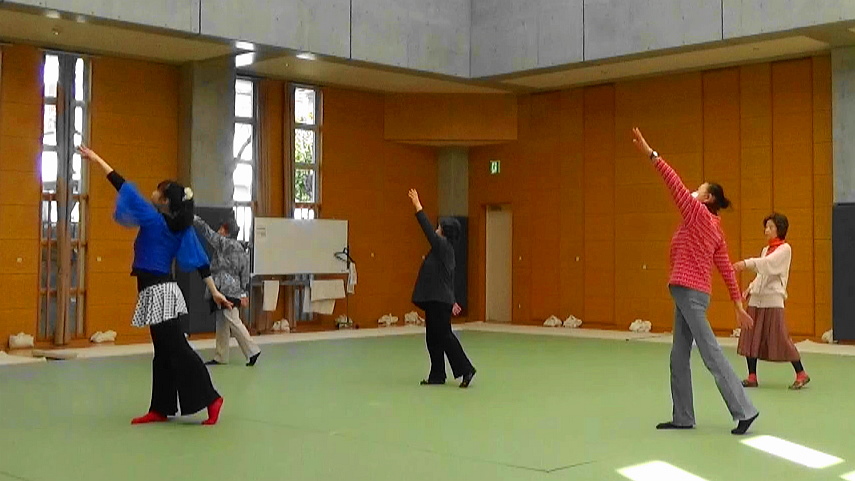 毎回『みんなでストレッチ』と『新宿いきいき体操』で充分なウォーミングアップをしてから、ダンスのお稽古に入ります。