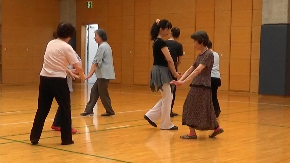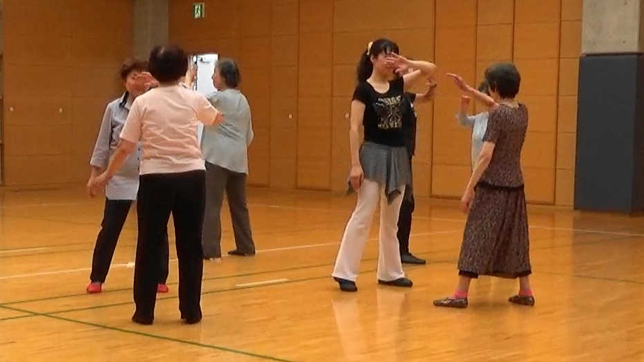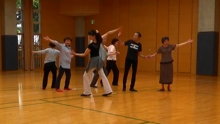 ウォーミングアップにいつもの『みんなでストレッチ』と『新宿いきいき体操』