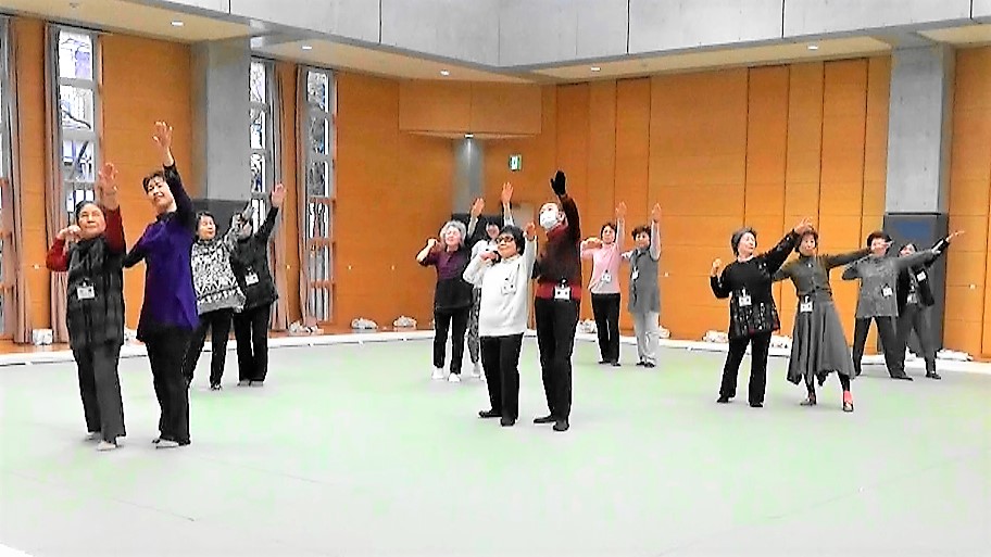 『みんなでストレッチ』『新宿いきいき体操』で身体をほぐしてから、