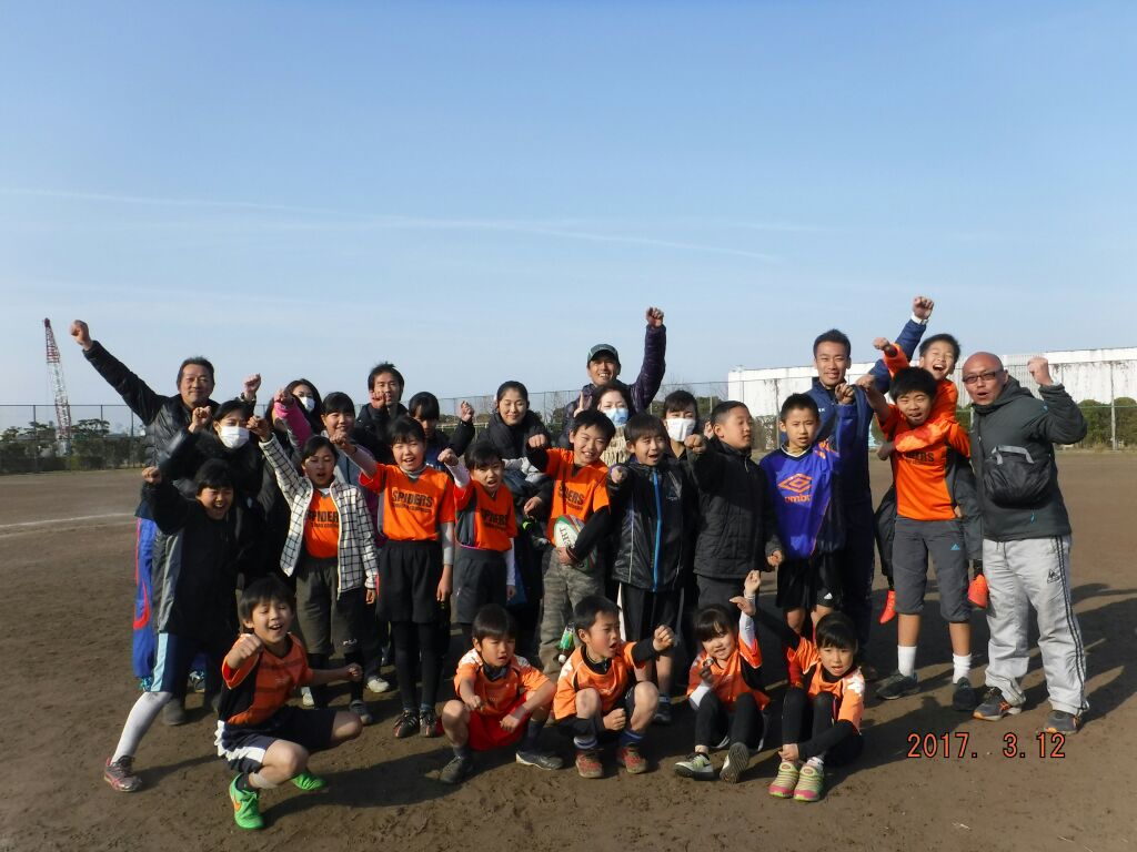 3月12日日曜日、大田区立森ケ崎公園運動場にて、タグラグビー城南カップが行われました。 結果は低下位トーナメント2位、高トーナメント4位でした。 低学年は5人だけで6試合戦い抜き、最後の決勝も惜敗でした。全3勝3敗 高学年は予選10位で上位トーナメント最下位も8位トライに完勝。リベンジの1位島根にはまたもや完敗。3位決定戦で久原にサドンデスで負けました。全3勝5敗 おかげさまで多くの保護者の応援もあり、今年度の締めくくりの大会も感慨深く終えることができました。 無事終了しまして、皆様ありがとうございました。<監督:K>